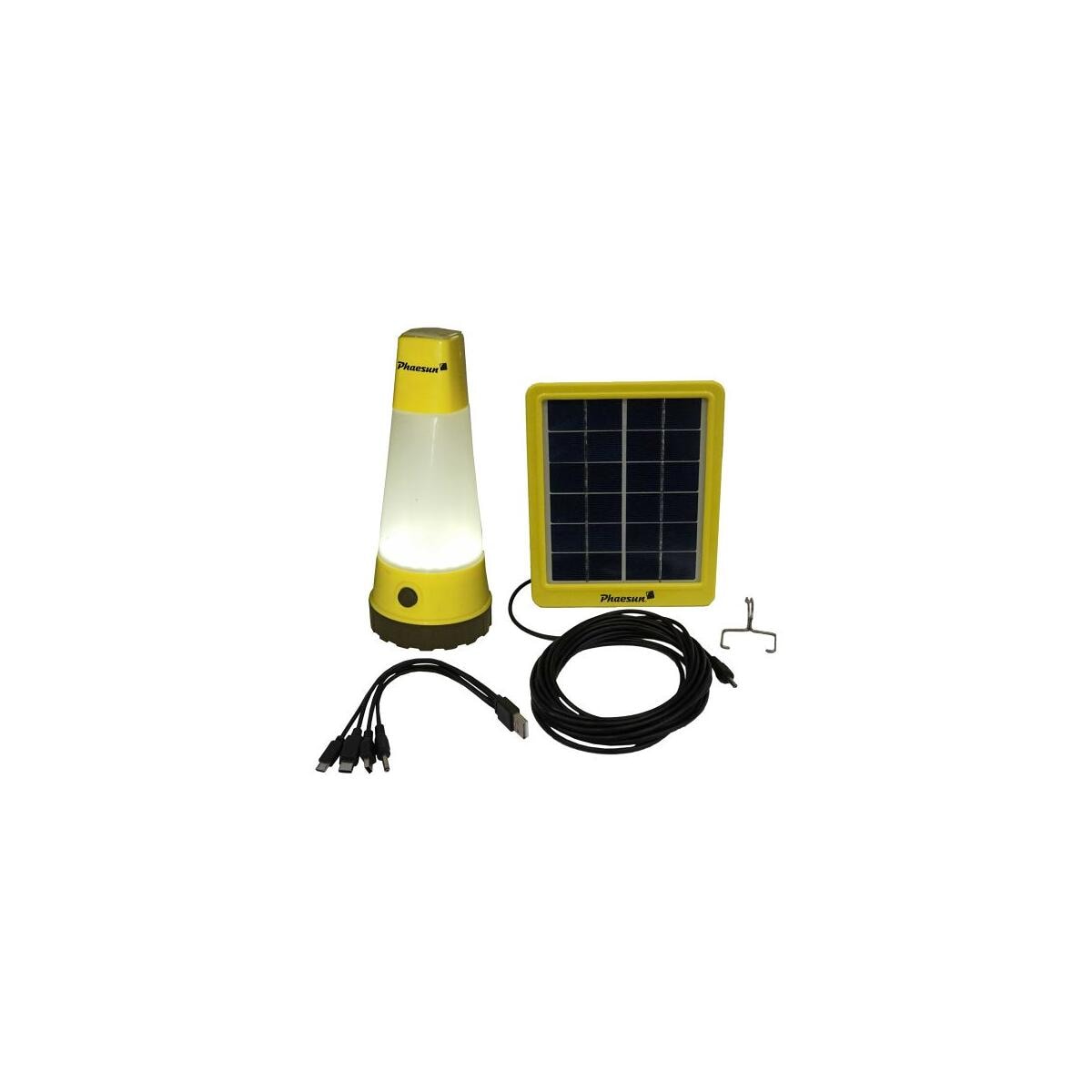 Sun Shine ist eine leuchtstarke Taschenlampe, dimmbare Lese- und Tischlampe, Warnblinklicht und vielfarbige Party-Beleuchtung (RGB LED mit 4 Stufen) zugleich und kann mit einem kleinen Solarmodul oder einem USB-Steckernetzteil nachgeladen werden. Die integrierte Batterie kann zudem USB-Geräte nachladen. Technische Daten: Farbe: gelb LED: Ja Lichtstrom in Lumen: 210 lm Nennleistung: 2,3 W Breite: 14,3 cm Höhe: 18 cm Tiefe: 10,7 cm Durchmesser: 7,4 cm Nettogewicht: 600 g Packmaß: 18,5 x 14 x 11 cm