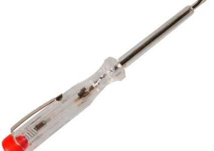 Prüf-Schraubendreher mit Metall-Clip 0,3 x 14,0 cm geprüft nach VDE 0680 Teil 6 Heft glasklar Klinge isoliert mit Prüfknopf 220 – 250 V, VDE