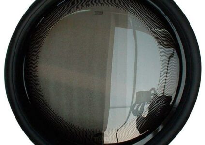 Bullauge mit Grauglas und schwarzem Siebdruck. Technische Daten: Material: Acryl Bestell- / Ausschnittmaß (BxH): 450 mm Lichtes Maß / Durchsicht (BxH): 426 mm Gewicht: 800 g Hinweis: Lieferung ohne Gummiprofil / Zubehör!