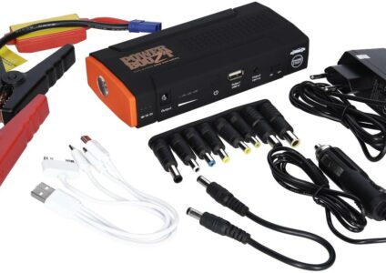 PowerBoozt – Multifunktionale Powerbank und Startbooster PowerBoozt ist Ladegerät, Starthilfe und Powerbank in Einem! Sie können damit problemlos Autobatterien, Mobiltelefone und sogar Laptops aufladen. Der PowerBoozt ist handlich und kann überall mit hingenommen werden. Technische Daten: Batterietechnologie LiCo02 Kapazität 16000 mAh inklusive 230 Volt Ladegerät und 12 V-Kfz Ladekabel Fahrzeugstartfunktion: erreicht eine Spitzenlast von 600 A / inkl. Klammern Output für Laptops: 12 V – 16 V – 19 V /…
