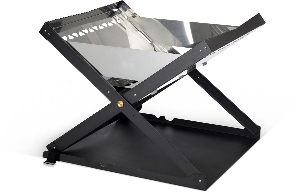Der &#39,Kamoto&#39, ist eine gut zu transportierende Feuerschale für Holz oder Holzkohle, die keine Spuren eines Lagerfeuers hinterlässt. Einfach aufgeklappt, ist sie innerhalb von Sekunden betriebsbereit. Die eigentliche Feuerschale, das Grillgitter und der Windschutz an den Seiten bestehen aus Edelstahl. Der Lufteinlass auf der Unterseite ermöglicht eine effektive Verbrennung, während das Ascheblech unter der Feuerschale den Boden vor Brandschäden schützt. &#39,Kamoto&#39, kommt inklusive dem…