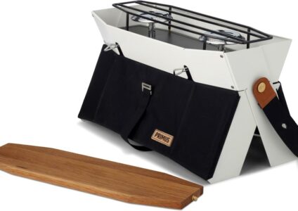 Der &#39,Onja&#39, ist ein sehr kompakter und moderner Kocher mit zwei Brennern. Dank des Umhängegurtes lässt er sich leicht transportieren und funktioniert auf einem Ausflug in der Stadt ebenso gut wie an einem Wochenende mit dem Kajak. Im ausgezogenen Zustand bildet das Gehäuse eine solide Kochstelle und schützt die Brenner vor Luftzug. Die Oberseite verfügt über eine Abdeckung aus Eichenholz, die sich zusätzlich als Schneidebrett oder Servierplatte verwenden lässt. Merkmale: Zwei Brenner Eichenholz…