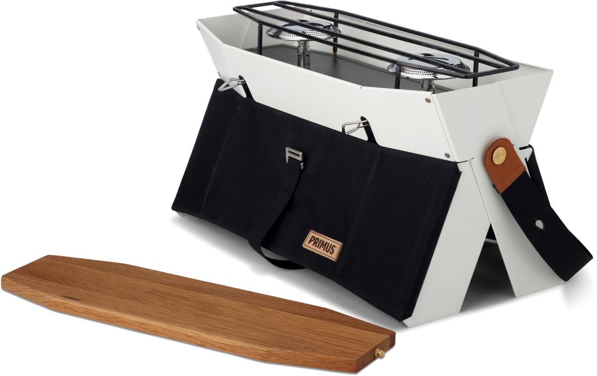 Der &#39,Onja&#39, ist ein sehr kompakter und moderner Kocher mit zwei Brennern. Dank des Umhängegurtes lässt er sich leicht transportieren und funktioniert auf einem Ausflug in der Stadt ebenso gut wie an einem Wochenende mit dem Kajak. Im ausgezogenen Zustand bildet das Gehäuse eine solide Kochstelle und schützt die Brenner vor Luftzug. Die Oberseite verfügt über eine Abdeckung aus Eichenholz, die sich zusätzlich als Schneidebrett oder Servierplatte verwenden lässt. Merkmale: Zwei Brenner Eichenholz…