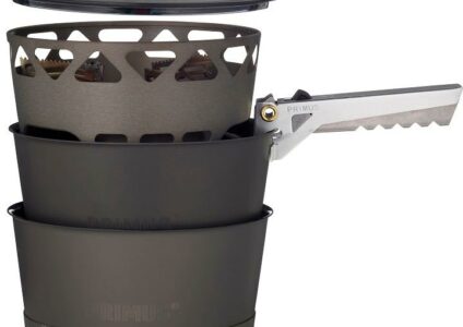 Hier ist der Gasbrenner in den Windschutz integriert, was den Kocher sehr stabil macht. Leicht zusammen zu bauen und schnell einsatzbereit. Mit relativ leisem Brenner. Die Töpfe aus hart eloxiertem Aluminium sind sehr wärmeleitfähig und einer davon ist mit dem speziellen Wärmeleitsystem für beste Kochzeiten ausgestattet. Dieser Topf hat außerdem eine keramische Innenbeschichtung zum einfachen Kochen und Pflegen. Der transparente Deckel hat eine praktische Siebfunktion. Technische Daten: Leistung 2000 W…