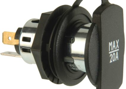 Zum Betreiben von Zusatzgeräten in Auto, Boot und Caravan, mit schwarzen Schraubgewinde. Befestigung mittels Sechskantmutter. (Mutter nicht im Lieferumfang enthalten). Technische Daten: Belastbarkeit: 20 A bei einem Kabelquerschnitt von 2,5 mm² 15 A bei einem Kabelquerschnitt von 1,5 mm² Innen -Ø 21 mm Einbauöffnung 27,8 mm 12-24 V