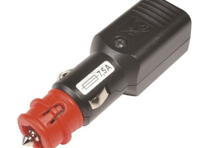 Universalstecker 12 – 24 Volt, passend für Zigarettenanzünder- und Powersteckdosen (Innen-ø 21 mm) und Normsteckdosen (Innen-ø 12 mm). Mit integrierter, auswechselbarer Flachstecksicherung. Spezieller Mittelkontakt für hohe Strombelastbarkeit und niedrige Übergangswiderstände, 3-schenkliger Minuskontakt für sicheren Halt in der Steckdose. Mit arretierbarer Ausgleichshülse durch Bajonettverrastung. Mit geschraubter Zugentlastung. Technische Daten: Farbe: schwarz,rot Ohne LED Nennspannung: 12 V, 24 V…