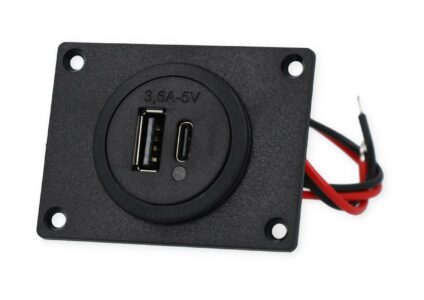Power USB-C/A Doppelsteckdose inkl. Montageplatte 12-24 V/5V 3,6 A mit integriertem Spannungswandler und blauer LED. Zum Laden und Betreiben elektronischer Geräte, die über USB geladen werden können und einen hohen Ladestrom benötigen. Befestigung mittels Sechskantmutter und beiliegenden Schrauben Überlastschutz Verpolungsschutz Übertemperaturschutz Kurzschlussschutz Überspannungsschutz bei kurzen Spannungsspitzen Kabelanschluss vorkonfektioniert Technische Daten: Kabellänge: 15 cm Input 8-34 Volt E1…