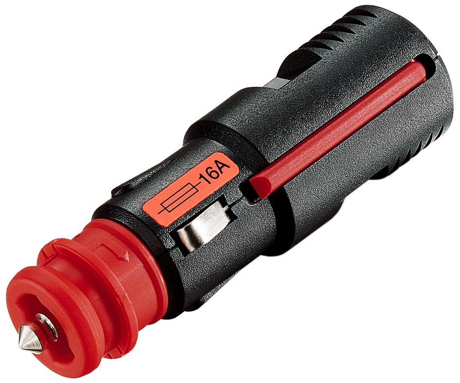 16 A/12-24 V. Passend für Zigarettenanzünder- und Normsteckdosen. Mit Schraubkontakten bis 2,5 mm2, festarretierbarer Ausgleichshülse durch Bajonettverrastung und ausklappbarem Zugwerkzeug. durch rote Ausgleichshülse passend in Norm-und Zigarettenanzündersteckdosen im Kfz, Reisemobil, LKW und Boot gesichert durch schraubbarer Zugentlastung Technische Daten: 12 – 24 Volt 16A Schraubkontakte bis 2,5 mm² TÜV geprüft und überwacht