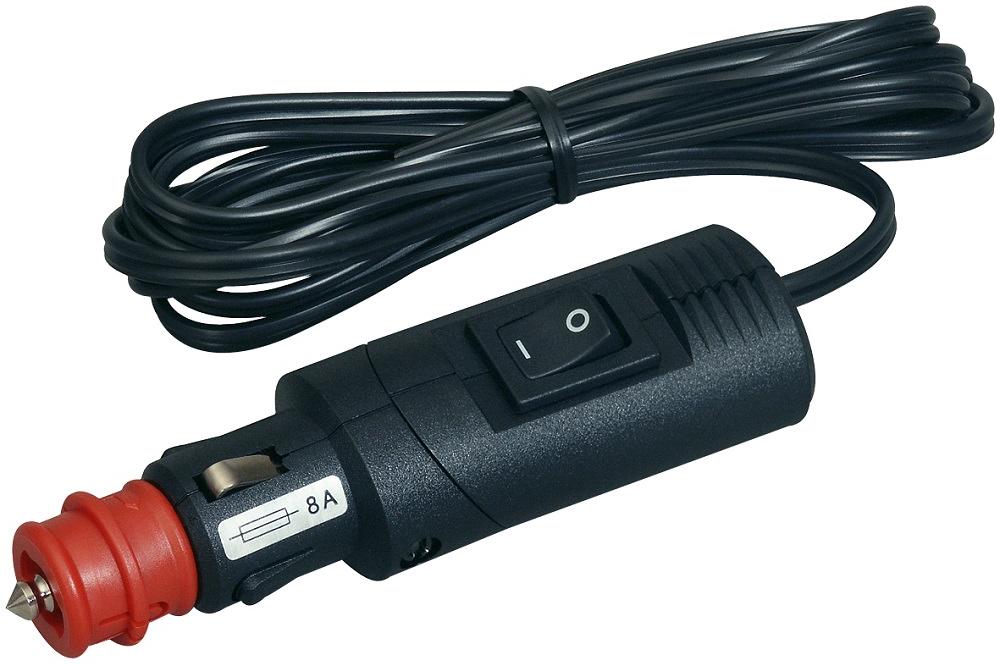 8 A/12-24 V, mit 1-poligem Ausschalter, Schaltwippe bedruckt mit 0-I, konfektioniert mit Flachleitung 2 x 0,75 mm2, Länge: 2,0 m. Der Stecker ist um 180° stufenlos schwenkbar, mit Schraubkontakten, festarretierbare Ausgleichshülse durch Bajonettverrastung. Mit integrierter, auswechselbarer Sicherung 8 A, passend für Zigarettenanzünder- und Normsteckdosen. Technische Daten: 8 A/12 – 24 V 180° stufenlos schwenkbar inkl. Sicherung 8 A Flachleitung 2 x 0,75 mm2 2 Meter Kabel