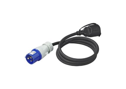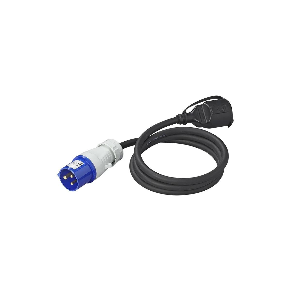 Adapterkabel von CEE-Stecker nach Schuko. Technische Daten: Stromstärke: 16A Länge: 150 cm Packmaß: 5,5 x 27 x 34 cm 3×2,5mm² Gewicht: 0,63 kg Material: VDE Neoprenkabel Geeignet für Temperaturen zwischen +50 und -35 °C