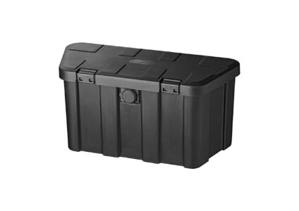 Sichere Aufbewahrungsbox mit Fassungsvermögen von ca. 45 Liter und Montage-Set für V-Deichsel. Praktische und vielseitige Aufbewahrungsbox für Anhängerdeichsel Abschließbar durch Zahlenschloss Montagematerial inklusive (für V-Deichsel) Technische Daten: Maße: 67,4 x 30,4 x 33 cm Packmaß: 70 x 33,4 x 37 cm Gewicht: 4,99 kg Volumen: 45 Liter Material: PP Max. Belasung: 150 kg