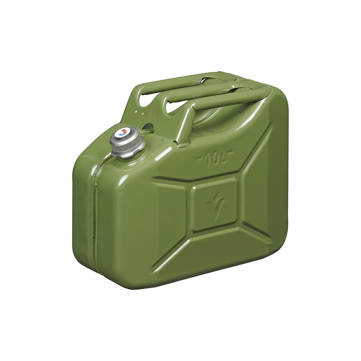 Benzinkanister aus Metall zum Transport brennbarer Flüssigkeiten – Ottokraftstoff und Diesel. mit magnetischen Verschluss, damit dieser nicht mehr so leicht abhanden kommt Technische Daten: Material: Metall Volumen: 10 Liter Gewicht: 2,82 kg Farbe: grün