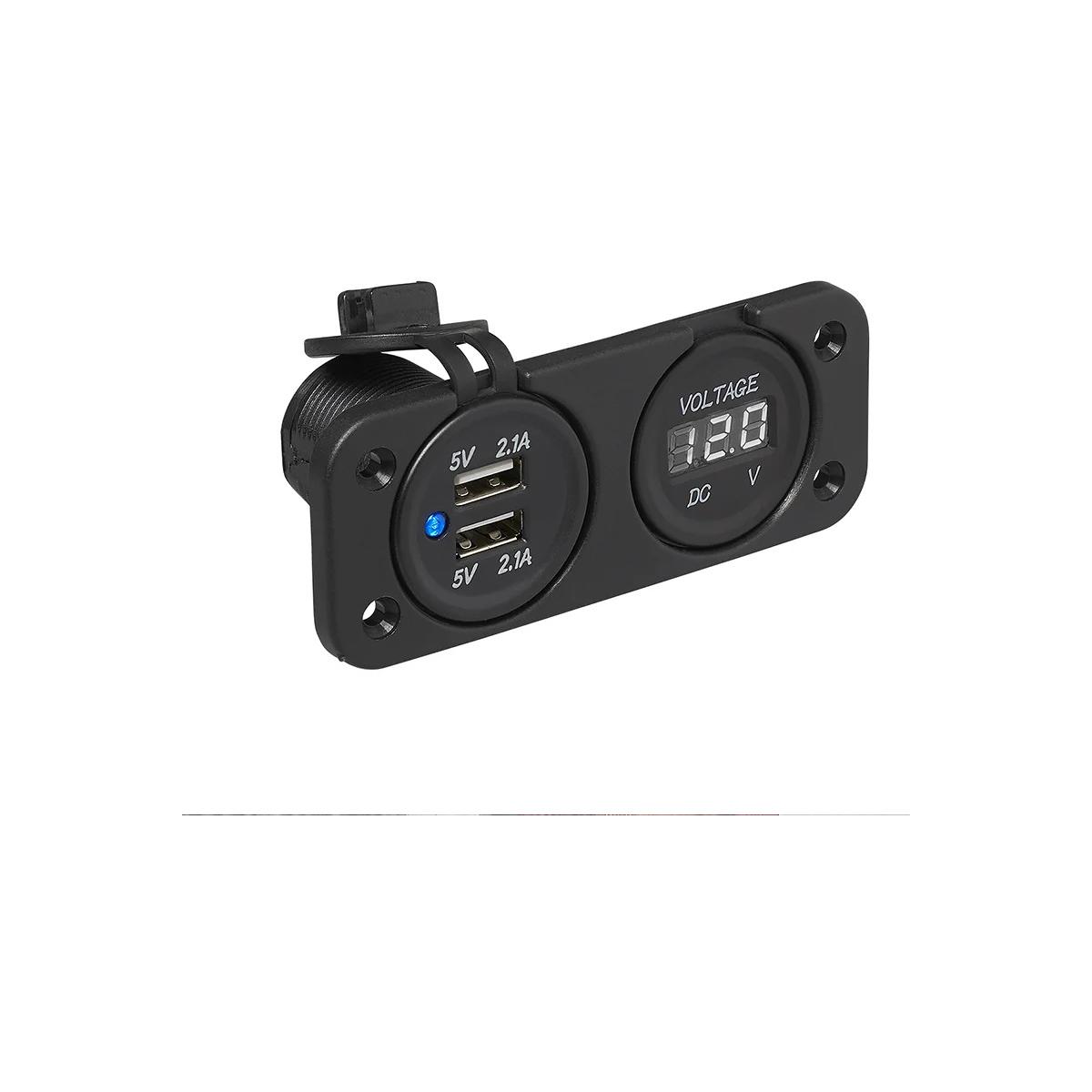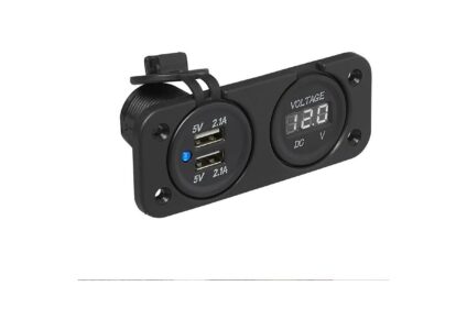 Pro Plus Einbau Kit: Voltmeter 6-30V + USB-A Doppel-steckdose 2x2100mA