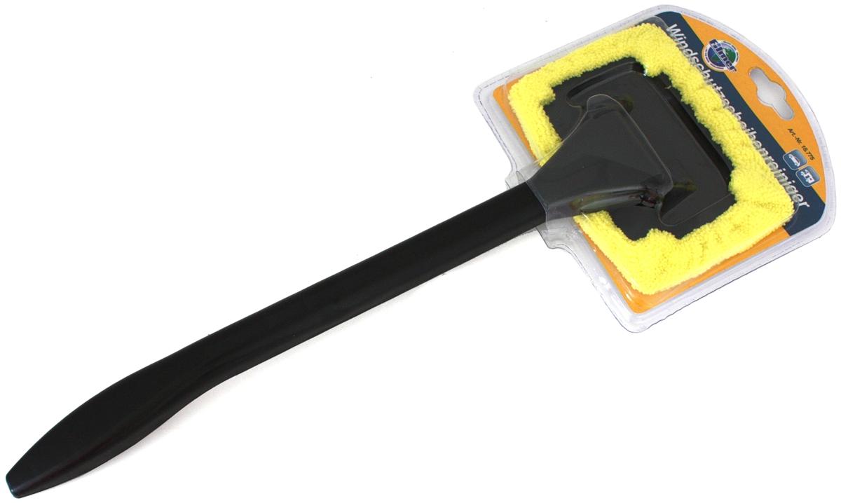 Scheibenreiniger für einfaches Reinigen der Windschutzscheibe Schafft freie Sicht bei angelaufenen Scheiben Flexibler Kopf Pflege Bezug: Handwäsche bei 30 °C mit mildem Seifenwasser Technische Daten: Gesamtlänge: 38,5 cm Maße: Platte 12,5 x 8,5 cm Material Griff und Platte: ABS Material Microfasertuch: 100 % Polyester