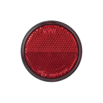 Reflektor mit 5mm Bolzen Boltz M5 mit Mutter und Unterlegscheibe E-geprüft (e24) Mit Grundplatte Technische Daten: Farbe: Rot Durchmesser: ca. Ø60mm Gewicht: 40g