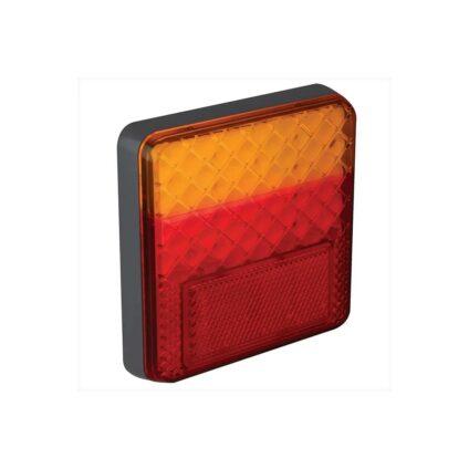 Rückleuchte 12/24V 4 Funktionen 100x100mm LED. ECE E9-geprüft 12V & 24V (13.8V / 28V) Wasserdicht 4 Funktionen: Brems-, Rück-, Blinklicht und Rückstrahler 12V: Bremslicht 0.15A / Rücklicht 0.07A / Blinklicht 0.11A 24V: Bremslicht 0.12A / Rücklicht 0.06A / Blinklicht 0.07A