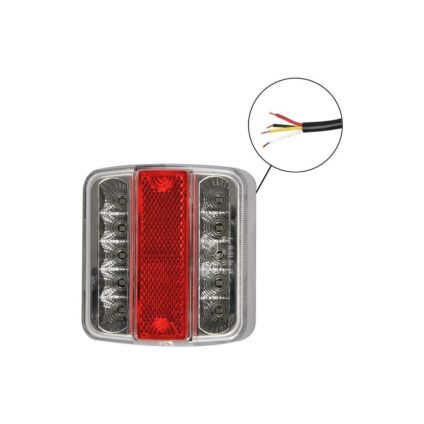 Rückleuchte 4 Funktionen 98x105mm 14LED. E4-geprüft 12V IP67 Drahtfarbcode: weiß = Masse schwarz = Rücklicht/Kennzeichenbeleuchtung gelb = Blinker rot = Bremslicht