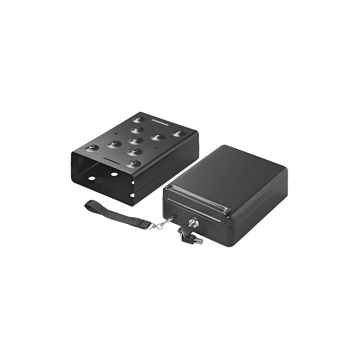 Pro Plus Stahlsafe mit Halterung Stabile Metallbox Kompakte Bauweise Einfache Befestigung durch mehrere Schrauben Besonders geeignet für Fahrzeuge, Camping, Büro, zu Hause, usw. Technische Daten: Maße: 88 x 175 x 240 mm Gewicht: 2 kg
