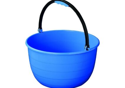 Ideal für Camping und Haushalt. Aus robustem Kunststoff mit stabilem Henkel. Technische Daten: Volumen 15 Liter Maße: (ø x H) 35 x 21 cm Farbe: blau