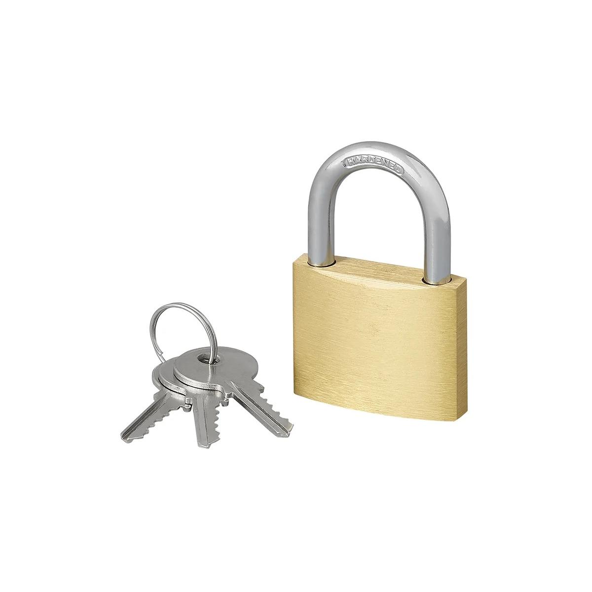 Vorhängeschloss zum Abschließen Ihrer Gegenstände. Inkl. 3 Schlüsseln Technische Daten: Packmaß: 20 x 93 x 167 mm Gewicht: 130 g Material: Messing