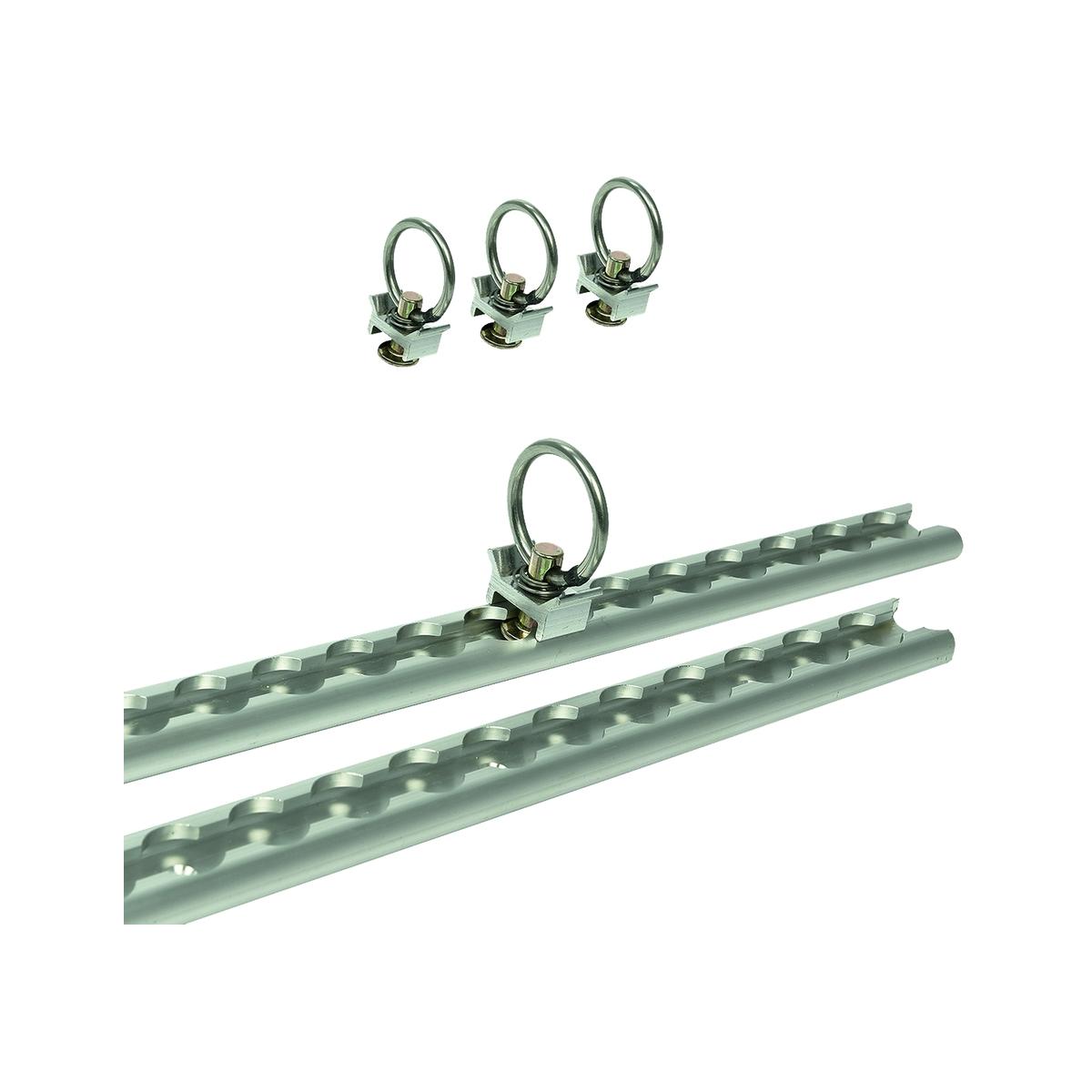 Zurrschienen Set um Ladung bzw. Fahrräder in der Heckgarage sicher zu befestigen. Zum Aufsetzen an die Fahrzeugwand oder den Fahrzeugboden. Lieferumfang: 2 x 60 cm Zurrschienen 4 x Zurrösen rund, inklusive Schrauben