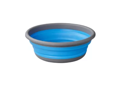 Faltbare Spül- & Waschschüssel. Perfekt für die Campingküche. Technische Daten: Durchmesser unten: ca. 20,5 cm Durchmesser oben: ca. 37,5 cm Gefaltete Höhe: ca. 4,5 cm Entfaltete Höhe: ca. 14 cm Volumen: 9 Liter Material: Silikon