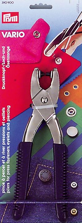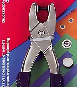 Die praktische Qualitätszange mit ausführlicher Gebrauchsanweisung. Für Drücker, Ösen, Jeans-Knöpfe, Nieten. Mit Lochwerkzeugen für ø 3 bis 4 mm. Länge der Zange 20 cm.