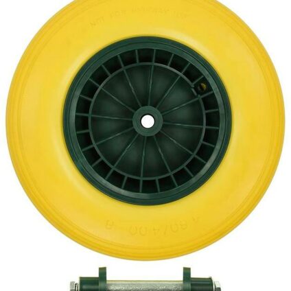 Pannensicherer Polyurethan-Reifen mit Kunststoff-Felge und inkl. Achse für Sackkarre, Handwagen, Stützrad und vieles mehr. Technische Daten: Farbe: gelb Reifenbreite: 75 mm ,3.00-4 Lieferumfang: 1 x Reifen inkl. Achse