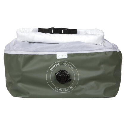 Mit diesem Pumpsack kannst du dein Packraft PR100 Itiwit mit wenigen Zügen aufpumpen. ohne eine Pumpe mitschleppen zu müssen (Schlauch separat erhältlich). Aufblasen des Packraft PR100 Kajaks mit ca. 10 Pumpsack-Stößen.