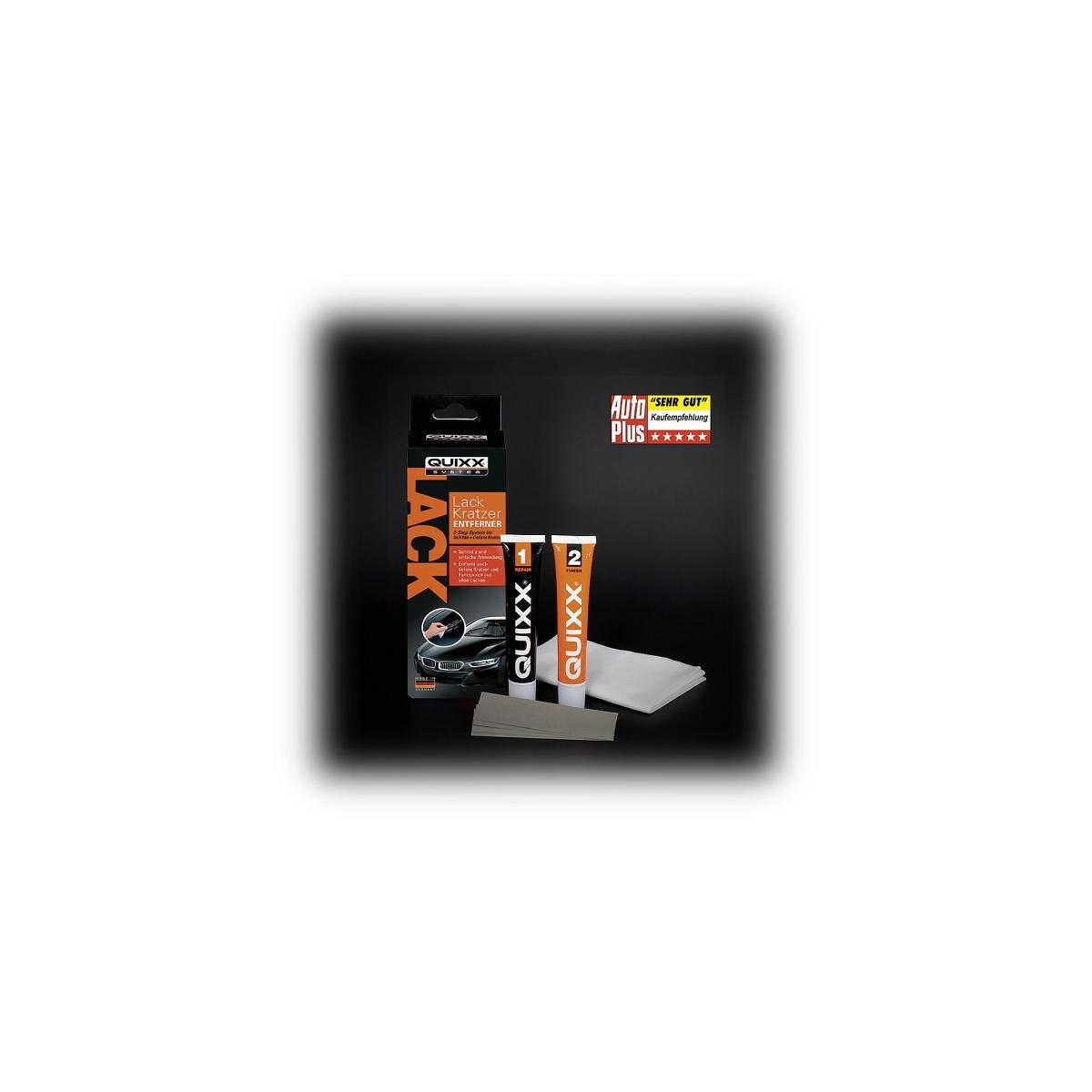 Einfach – zuverlässig – schnell. Entfernt Kratzer, Schrammen, Farbspuren aus allen Lackarten (auch Metallic). Geeignet für Auto, Motorrad, Reisemobil, Caravan und Boot. Lieferumfang: 1 x Tube QUIXX Polish 25 g 1 x Tube QUIXX Finish 25 g 1 x Poliertuch 4 x Spezial-Schleifpapiere.