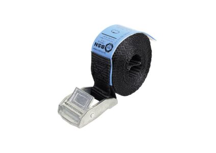 Spanngurt mit Klemmschloss – hochwertiges, sehr reißfestes und UV-stabiles 2,5 cm Polyester Gurtband. Entspricht prEN 12195-2 (VDI 2701 – DIN 60060) zur Ladungssicherung. Technische Daten: Material: Polyester Farbe: schwarz Belastbarkeit: 400 kg Länge: 250 cm Nettogewicht ohne Verpackung: 125 g