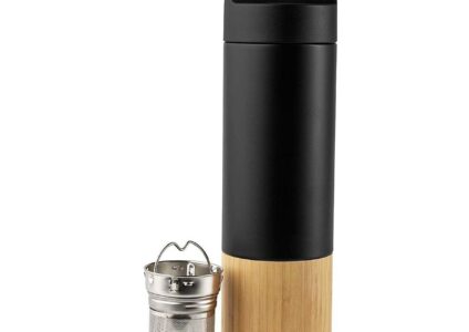 Diese Thermosflasche mit Teesieb ist für Teeliebhaber ideal beim Reisen. Durch das integrierte Teesieb genießt man auch unterwegs seinen Lieblingstee. In dieser Thermosflasche bleibt der Tee bis zu 8 Stunden warm. Die Kanne ist 100% dicht und leckt nicht. Also ein unverzichtbares Zubehör für Ausflüge! Die Thermosflasche mit Teesieb ist aus unverwüstlichem, lang haltbaren Edelstahl gefertigt. Die Kombination von Schwarz und Bambus gibt ihr ein klassisches Aussehen. Damit kann man sich überall sehen…