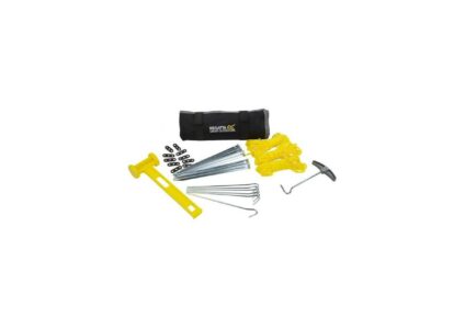 Das Regatta Camping-Zubehör enthält verschiedene Arten Heringe, damit das Zelt auf wirklich jedem Boden aufgestellt werden kann, mit zusätzlichen Zeltschnüren und Spannern, dazu ein starker Gummihammer und ein Gerät, um die Heringe wieder aus dem Boden zu ziehen. Und damit man alles immer zur Hand hat, steckt all das in einem praktischen, leicht transportierbaren Reißverschlussbeutel. Mit Kunststoffhammer Mit 6 V-förmigen Stahlheringen, 6 runden Stahlheringen und Heringsrauszieher Mit 3 × 3 m…