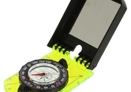 Kompakter und leichter Kompass mit Spiegel und Messskala für Karten. Lässt sich klein zusammenklappen und in der Schutzhülle verstauen. Mit Spiegel Hi-Viz Bildschirm Auf eine kompakte Größe faltbar Leichtgewichtig