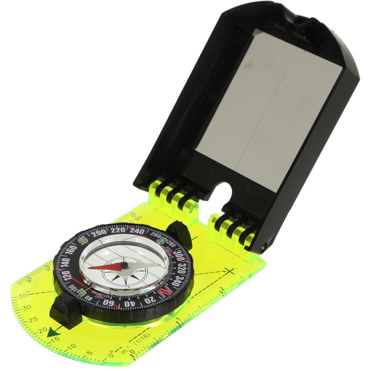 Kompakter und leichter Kompass mit Spiegel und Messskala für Karten. Lässt sich klein zusammenklappen und in der Schutzhülle verstauen. Mit Spiegel Hi-Viz Bildschirm Auf eine kompakte Größe faltbar Leichtgewichtig