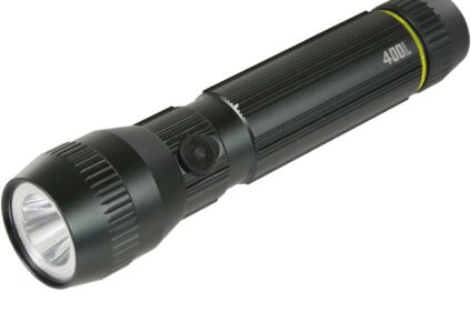 Expeditions-Taschenlampe mit 400 Lumen starkem Licht. Eine außergewöhnlich helle Lampe für Ausflüge im Stockdunkeln. 2 Stunden Betriebsdauer 400 Lumen Lichtstärke CREE Technology Aluminium-Chassis Lieferumfang: Taschenlampe inkl. 4 x AA-Batterien