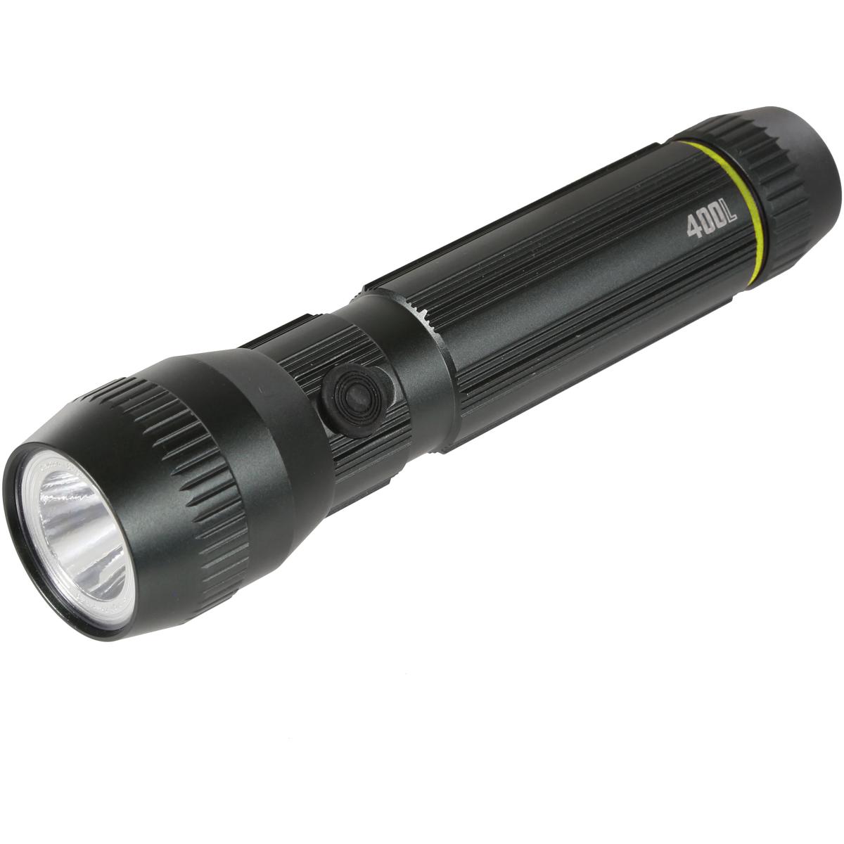 Expeditions-Taschenlampe mit 400 Lumen starkem Licht. Eine außergewöhnlich helle Lampe für Ausflüge im Stockdunkeln. 2 Stunden Betriebsdauer 400 Lumen Lichtstärke CREE Technology Aluminium-Chassis Lieferumfang: Taschenlampe inkl. 4 x AA-Batterien