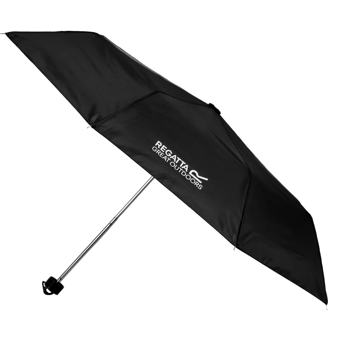 Kompakter Taschenschirm mit 48 cm (19“) breitem, abgeschrägtem Schirm zum Schutz vor Regen. Mit passender Tragetasche für einfaches Transportieren. Mit Tragetasche Auf eine kompakte Größe faltbar 48 cm Vordach