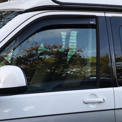 Windschutz bei geöffnetem Fenster – Frische Brise ohne Zugluft Frische Brise ohne Zugluft. Lüftung auch bei Regen. Kein Pfeifen bei geöffnetem Fenster, da aerodynamische Form. Durchsichtig, nicht getönt. TÜV abgenommen. Technische Daten: VW T7 ab Bj. 2021 Montage ohne Bohren: Fensterscheibe absenken, Windabweiser diagonal einsetzen und hochdrücken. Er klemmt in der Fensterführung ein. Scheibe vorsichtig hochfahren und prüfen, ob der Sitz stimmt. Bei einigen Fahrzeugen ist die Montage mit Zusatzklemmen…