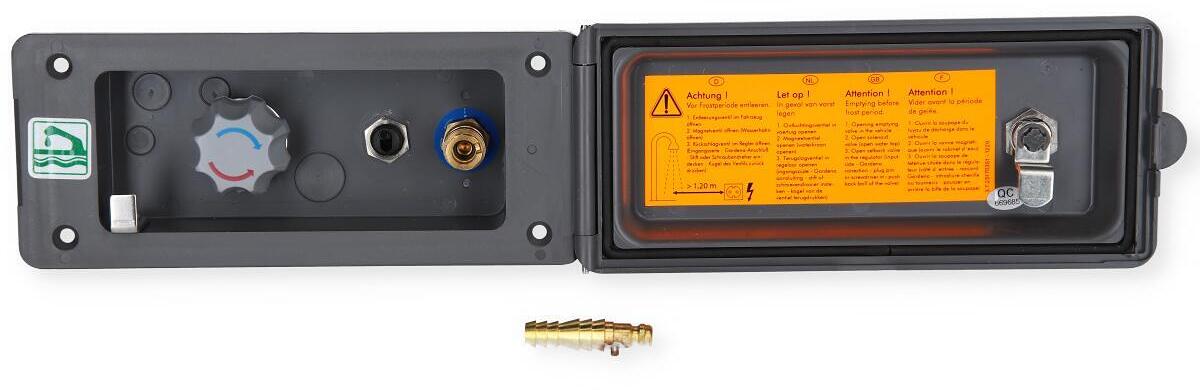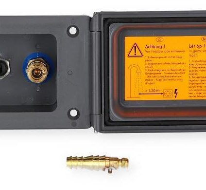 Wassersteckdose mit VormischerFür Kalt- und WarmwasserDruckfestTechnische Daten:Lochmaß: 157 x 67 mmTiefe 90 mmGehäuse trägt außen ca. 30 mm aufFarbe: schwarz