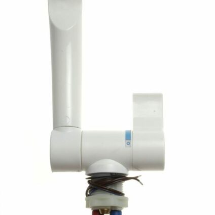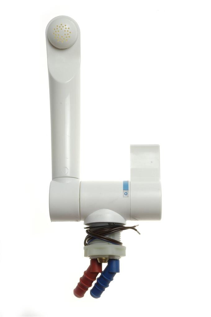 Wasserhahn Style 2005 mit Mikroschalter, dreh- und schwenkbarem Auslauf und geschwungenem Auslaufrohr. Der Hahn ist regulierbar, sehr bedienungsfreundlich. Niedrige Bauhöhe für den Einbau in Spülbecken mit Glasplatte.Technische Daten:Primärfarbe WeißMax Schaltvermögen: 4 AMontageloch: 20 mmGewindelänge: 20 mmVerbindungstülle: 10 mmBreite cm 7 cmHöhe cm 18 cmLänge cm 9,4 cmGewicht kg 0,17 kg