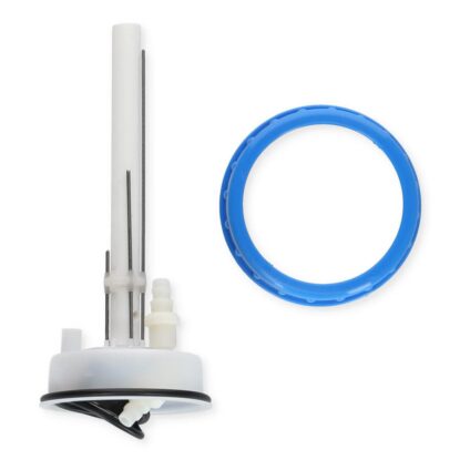 Tankverschraubung mit Füllstandsmesser, Schraubtülle, Kabeldurchführung und Entlüftung. Die Tanktiefe kann bis zu 270 mm betragen. Ist der Tank nicht so tief, einfach Messsonden absägen
