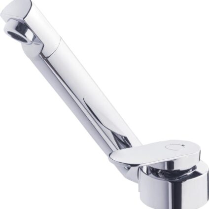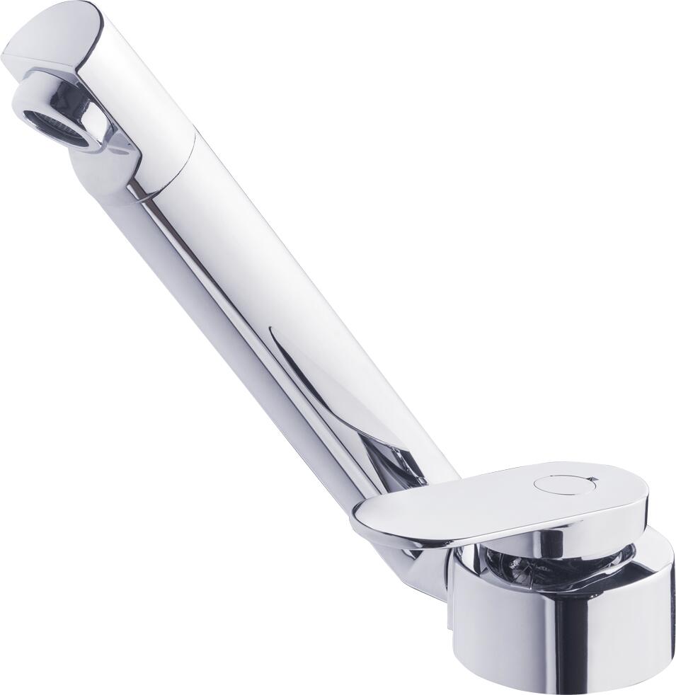Moderne, kompakte Kunststoff armatur für Küche, Dusche und Bad. Abklappbares, gerades Auslaufrohr mit drehbarem Perlator. Mit Schalter und Keramikkartusche, welche bei eingebautem Hahn getauscht werden kann. Moderne, kompakte Kunststoff armatur für Küche, Dusche und Bad Mit Schalter und Keramikkartusche Druckbeständig und Temperaturfest Technische Daten: Höhe: 40 mm Auslauflänge: 170 mm Bohrung: Ø 33 mm Gewicht: 180 g Farbe: chrom Material: kunststoff