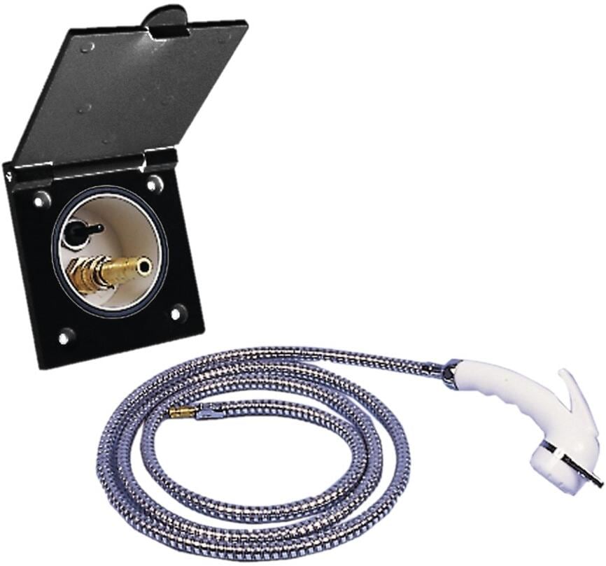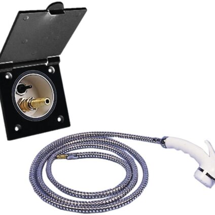 Komplett mit Charisma-Duschgarnitur und Carletta-Schlauch. Schlauch 1,5 m mit Schnellschlusskupplung und Start/Stopp Brausekopf. Technische Daten: Farbe: schwarz Lieferumfang: 1 Wassersteckdose mit Schlauch und Handdusche