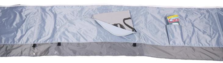 Die Bodenschürze bietet mehr Wohnqualität im Vorzelt und dient gleichzeitig als Windschutz und Sichtblende vor dem Caravan. mit 2 großen Taschen mit Reißverschluss und 2 kleinen Taschen inkl. Packsack Technische Daten: Material: 210T Polyester, PVC beschichtet Länge: 600cm Höhe: 45cm + 14cm Gewicht: ca. 3,3 kg