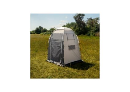 Ideal als Duschzelt oder Umkleidekabine am Strand. Geschützte Belüftungsöffnung oben ermöglicht schnellen Luftaustausch. Im Inneren verfügt das Zelt über Aufbewahrungstaschen für Duschgel oder ähnliches. Technische Daten: Wassersäule: 1000 mm Grundfläche B150 x T150 cm, H210 cm Material: 100% Polyester Packmaß: 54 x Ø12 cm Gestänge: Fiberglas Gewicht: ca. 3 kg Farbe: grau/anthrazit Lieferumfang: 1 Dusch- bzw. Umkleidezelt