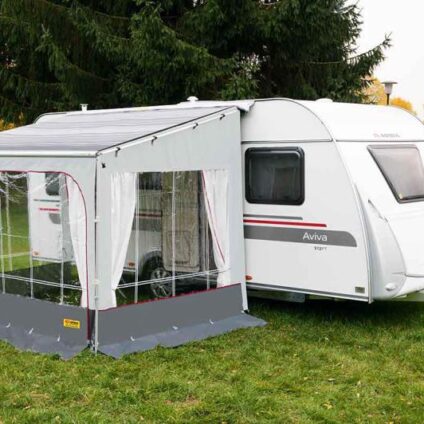Vorhang-Set für Vorderwand Villa Store Caravan Front 335 Technische Daten: Farbe: weiß Gewicht: 0,57 kg Lieferumfang:1 x Gardinenset