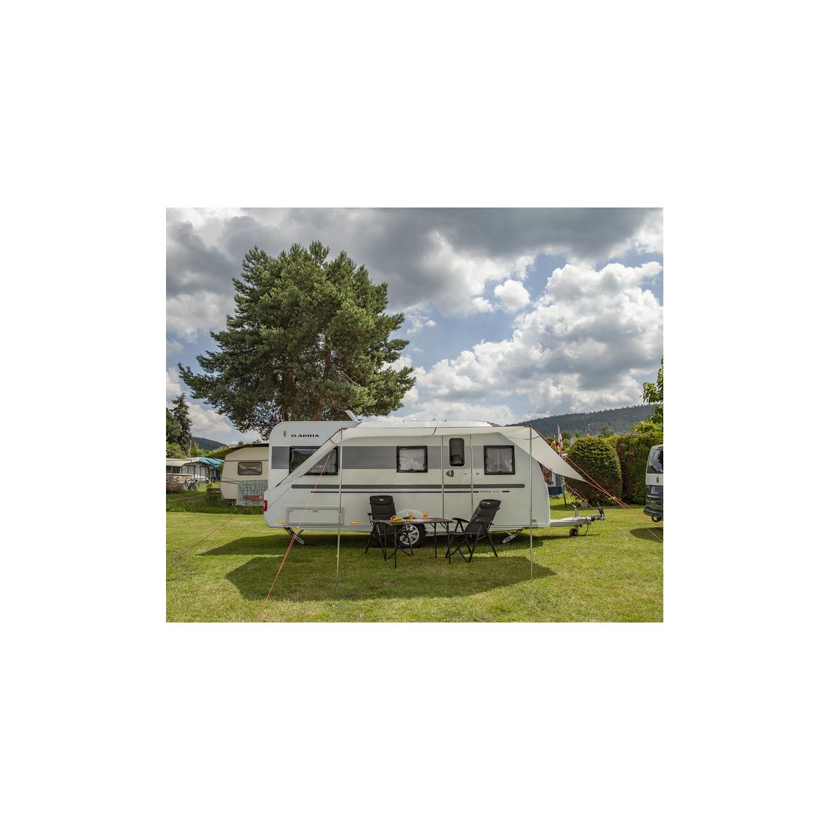 Die schwenkbaren Seitenteile können für zusätzlich Schutz nach unten gespannt werden.Hohe VariabilitätSchatten für große und kleine FahrzeugeSchlaufen zum Befestigen mit SaugnäpfenKeder 5 und 8 mm zum Einziehen in die KederschieneAn allen Ecken ÖsenTechnische Daten:Material: 100% Polyester (300D RipStop Polyester, PU- & UV-beschichtet)Farbe: Cool Grey, Einfassung dunkelblau, inkl. Kederleiste.Maße: B 560 x T 300 cm, Keder 300 cmPackmaß ca. 66 x Ø 16 cmGewicht: 6,6 kgWassersäule: 2000 mmLieferumfang:1…