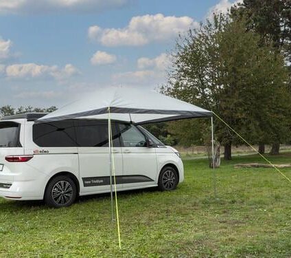 Das Palm Beach Quick 3.0 Sonnenvordach eignet sich für Campingbusse mit kurzem Radstand. Mit Schnellaufbau-System Mit 1 Handgriff zu öffnen Fixierte Fiberglasstangen Kuppeldach gegen Wassersäcke Dach mit 2 diagonal verlaufenden Fiberglasstangen Großzügiges Raumgefühl Bequeme Stehhöhe Technische Daten: Maße (B x T): 3000 x 240 cm Gewicht: 6,80 kg Packmaß: Ø 11 cm x 186 cm Farbe: Hellgrau/Anthrazit Fiber-/Stahlgestänge 210D Oxford Polyester Wassersäule: 2000 mm Lieferumfang: Sonnendach inkl….