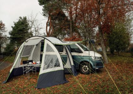 Das Einsteiger-Modell für Campingbusse. Das 1-Tunnel-Vorzelt für Vans mit großer Tür in der Front, die auch als Sonnensegel einsetzbar ist. Große Fronttür und Seitentür aufrollbar als Sonnensegel nutzbar Seitliche Fenster mit 1/2 Moskitonetz und 1/2 transparentes PVC Seitliche Fenster in Front mit Innenabdeckung Große D-Shape Tür in Rückwand Technische Daten: Gewicht: 11,0 kg Breite: 300 cm Tiefe: 270 + 90cm (Schleuse) Höhe: 210 cm Anbauhöhe: 180 – 200 cm Wassersäule: 3.000 mm Nähte: versiegelt…